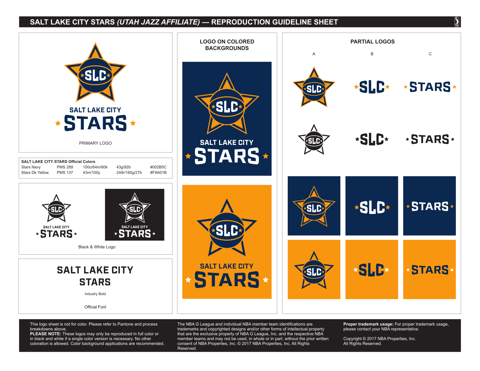 {{cite web}}: CS1 maint: url-status (link) - ^ "Salt Lake City Stars Reproduction Guideline Sheet". NBA Properties, Inc. Retrieved August 30, 2017.